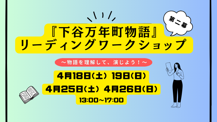 《4日間》第二幕『下谷万年町物語』リーディングワークショップ - 2026年1月18日 オンラインワークショップ情報